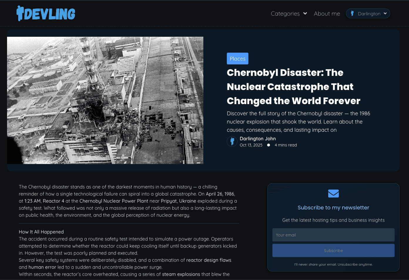 Once subscribed, users automatically receive an email notification whenever a new article is published. The email includes the article’s title, description, and cover image, along with a direct link to read the article.